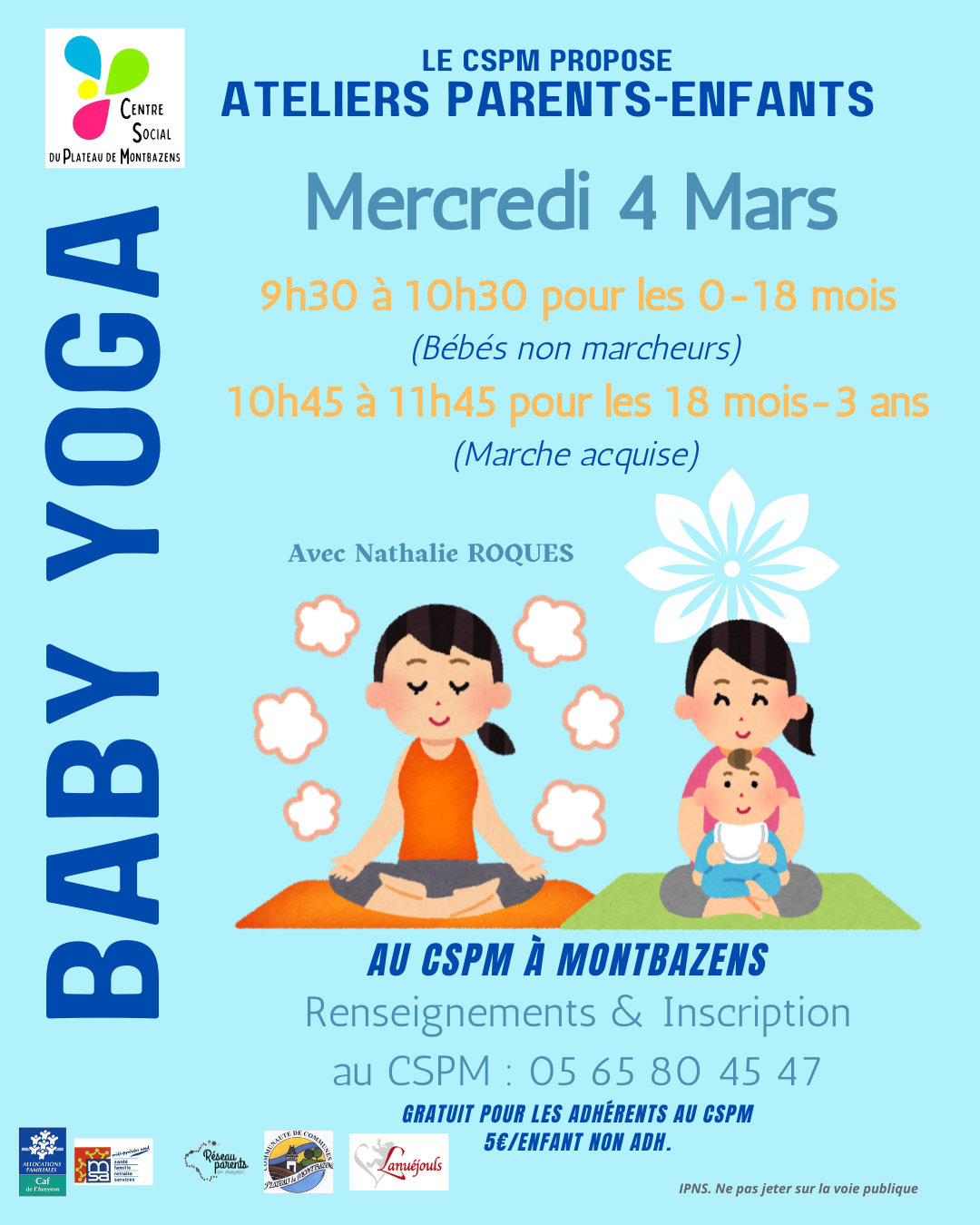 Mis en avantCentre Social du Plateau de Montbazens 16 Chemin du Tournevic, Montbazens, FranceAvis aux petits 🧘♂️ 𝐘𝐨𝐠𝐢𝐬 et à leur parents : 𝐌𝐞𝐫𝐜𝐫𝐞𝐝𝐢 𝟒 𝐌𝐚𝐫𝐬 nous vous donnons rendez-vous pour de nouvelles séances de 𝐁𝐚𝐛𝐲 𝐘𝐨𝐠𝐚 et 𝐘𝐨𝐠𝐚 𝐊𝐢𝐝𝐬 avec Nathalie Roques : * de 9h30 à 10h30 pour les 0-18 mois (enfants non marcheurs) * de 10h45 à 11h45 pour les 18 mois-3 ans (marche acquise) […]