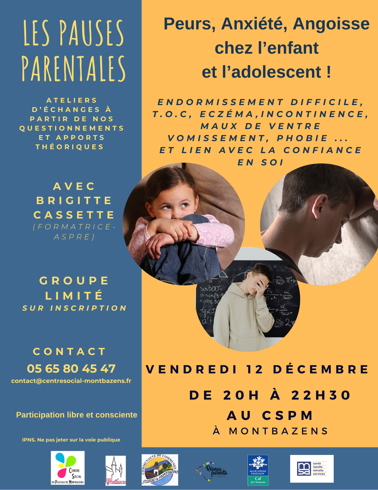 Centre Social du Plateau de Montbazens 16 Chemin du Tournevic, Montbazens, FranceVendredi 12 Décembre Rendez-vous pour une nouvelle Pause Parentale avec Brigitte Cassette "𝐏𝐞𝐮𝐫𝐬, 𝐚𝐧𝐱𝐢𝐞́𝐭𝐞́, 𝐚𝐧𝐠𝐨𝐢𝐬𝐬𝐞 𝐜𝐡𝐞𝐳 𝐥'𝐞𝐧𝐟𝐚𝐧𝐭 𝐞𝐭 𝐥'𝐚𝐝𝐨𝐥𝐞𝐬𝐜𝐞𝐧𝐭" - Difficultés qui y sont liées (endormissement difficile, T.O.C, eczéma,incontinence, maux […]