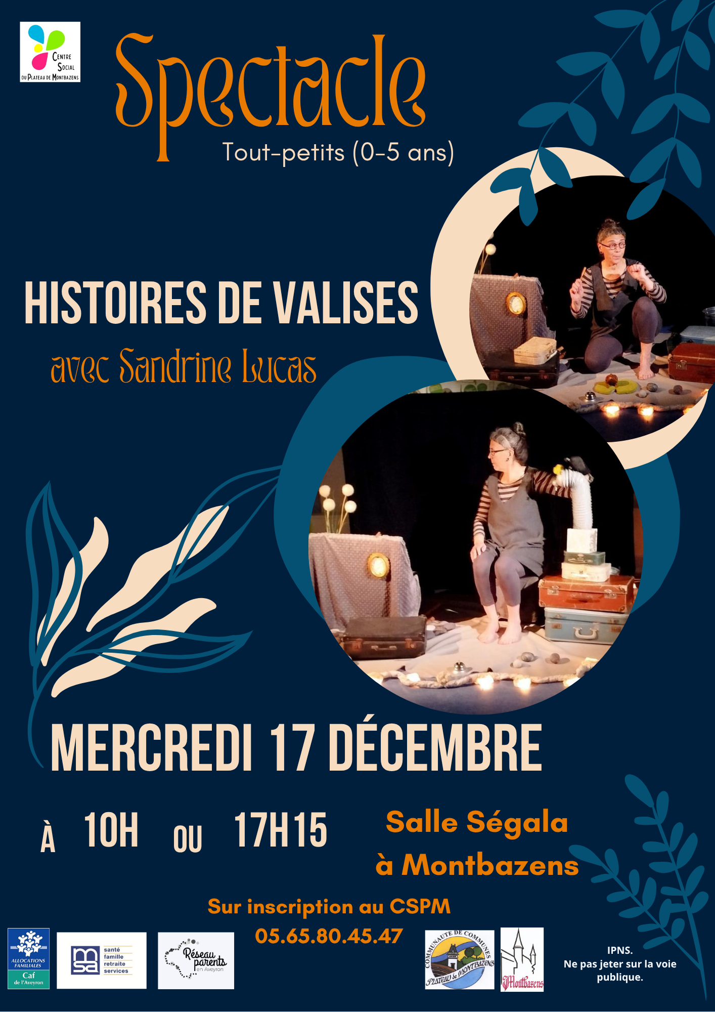 Centre Social du Plateau de Montbazens 16 Chemin du Tournevic, Montbazens, FranceRendez-vous pour un Spectacle familial "Histoires de valises" avec Sandrine Lucas Un moment à partager en famille pour les enfants de 0 à 6 ans... les plus grands peuvent aussi venir […]