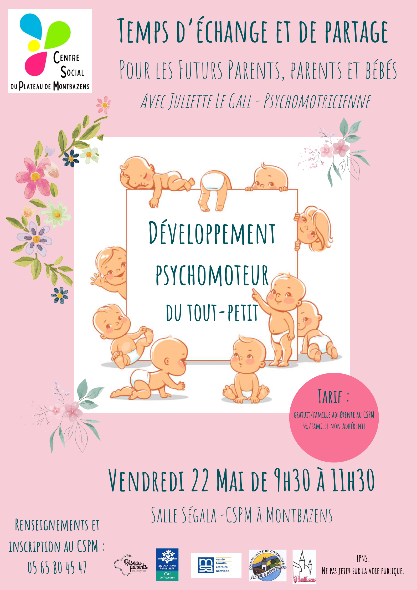 Mis en avantCentre Social du Plateau de Montbazens 16 Chemin du Tournevic, Montbazens, FranceA l'attention des Futurs parents, Parents, Grands-Parents avec ou sans enfants de 0 à 2 ans ! Retrouvez-nous le Vendredi 22 Mai de 9h30 à 11h30 pour un Atelier Parents : […]